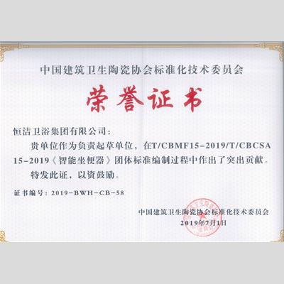 獎 項:《智能坐便器》團隊標準編制突出貢獻 ——恒潔衛(wèi)浴集團有限公司
