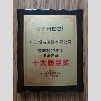 獎 項:2017年度衛浴產品十大質量獎