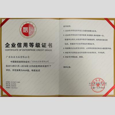 獎 項:企業信用等級證書AAA級-3年評審第一年