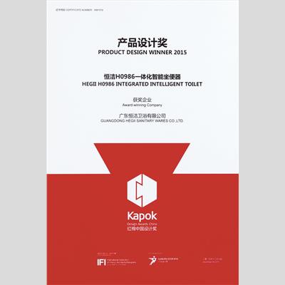 獎 項:2015紅棉獎·產品設計獎(恒潔H0986一體化智能坐便器)