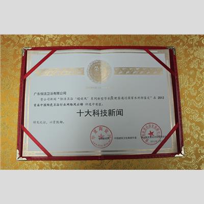 獎 項:中國陶瓷衛浴行業“十大科技新聞”