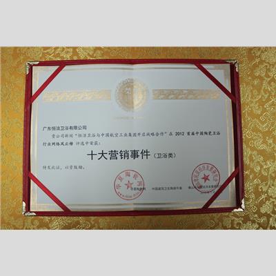 獎 項:中國陶瓷衛浴行業“十大營銷事件”(與中國航空工業集團合作)
