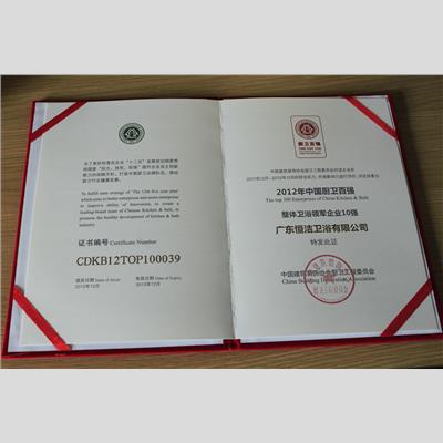 獎 項:2012年中國家居行業口碑排行榜-中國好衛浴