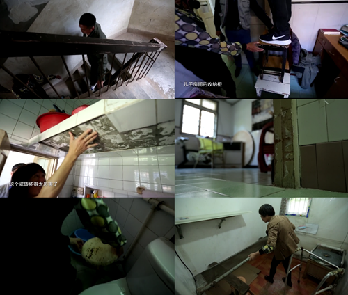 由于房門間距小,使用輪椅非常困難,門框周圍布滿了輪椅印記;過去為了防止父親上廁所的過程中出現意外,爸爸只能在衛生間里獨自呆上一整天;父親后期病情越發嚴重,媽媽已經無法幫助他下樓,爸爸最后的兩年時光就只能在一個陰冷、潮濕的地下車庫里度過。