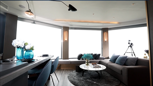 家中還有許多現代科技的結合,藏在墻壁之中的電視機、隱匿于壁櫥上沿的投影儀,甚至還有能在整個家播放的背景音樂,處處都透露著智慧而優雅的設計。而為男主人準備的視聽室,也是高科技的集成,不僅能用藍牙智能控制,而且這個房間也能一房多用,功能十足。
