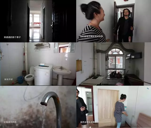 這間面朝湖景房屋由于遭受了十幾年的潮氣侵蝕早已變成了“浸泡在水中”的狀態。房間內三分之二的空間都被180°的圓弧客廳所占用,卻又很難利用;走道又暗又窄,衛生間空間極小,沒有采光還不通風;廚房和客廳相連,空間同樣很小;更讓人匪夷所思的是,就在這樣一間遇到大雨就會“水漫金山”的房子,卻嚴重“缺水”,由于水壓不夠,家里的水龍頭即便開到最大,也只有細小的水流;進水管竟然還走到了臥室的床頭。