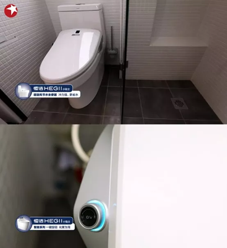 經過改造后的衛生間變得寬敞明亮,選用的衛浴產品也考慮得十分周到。「坐便器」設計師選擇了恒潔粉絲們熟悉的「超旋風坐鎮」3.5升的超低沖水量」卻擁有高出一截的超大沖刷力,「節水+沖凈一步到位」。有了如此強勁的馬桶還不夠,設計師還為坐便器配合了活水即熱的「恒潔智能馬桶蓋」,無需彎腰轉身,「水洗、烘干、清洗等功能一鍵完成」,從此訣別面壁思過的如廁方式。