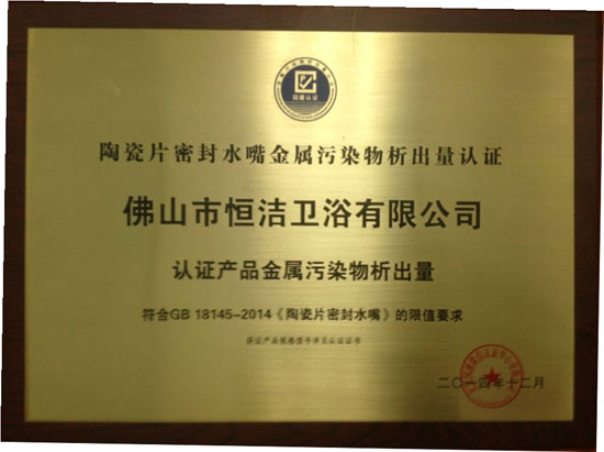 2014年12月1日,水龍頭新國(guó)標(biāo)出臺(tái),恒潔衛(wèi)浴等29家企業(yè)獲得《陶瓷片密封水嘴金屬污染物析出限值》認(rèn)證,恒潔衛(wèi)浴“以用戶需求為導(dǎo)向”的“最嚴(yán)堅(jiān)持”得到了國(guó)家權(quán)威機(jī)構(gòu)的肯定和贊許。