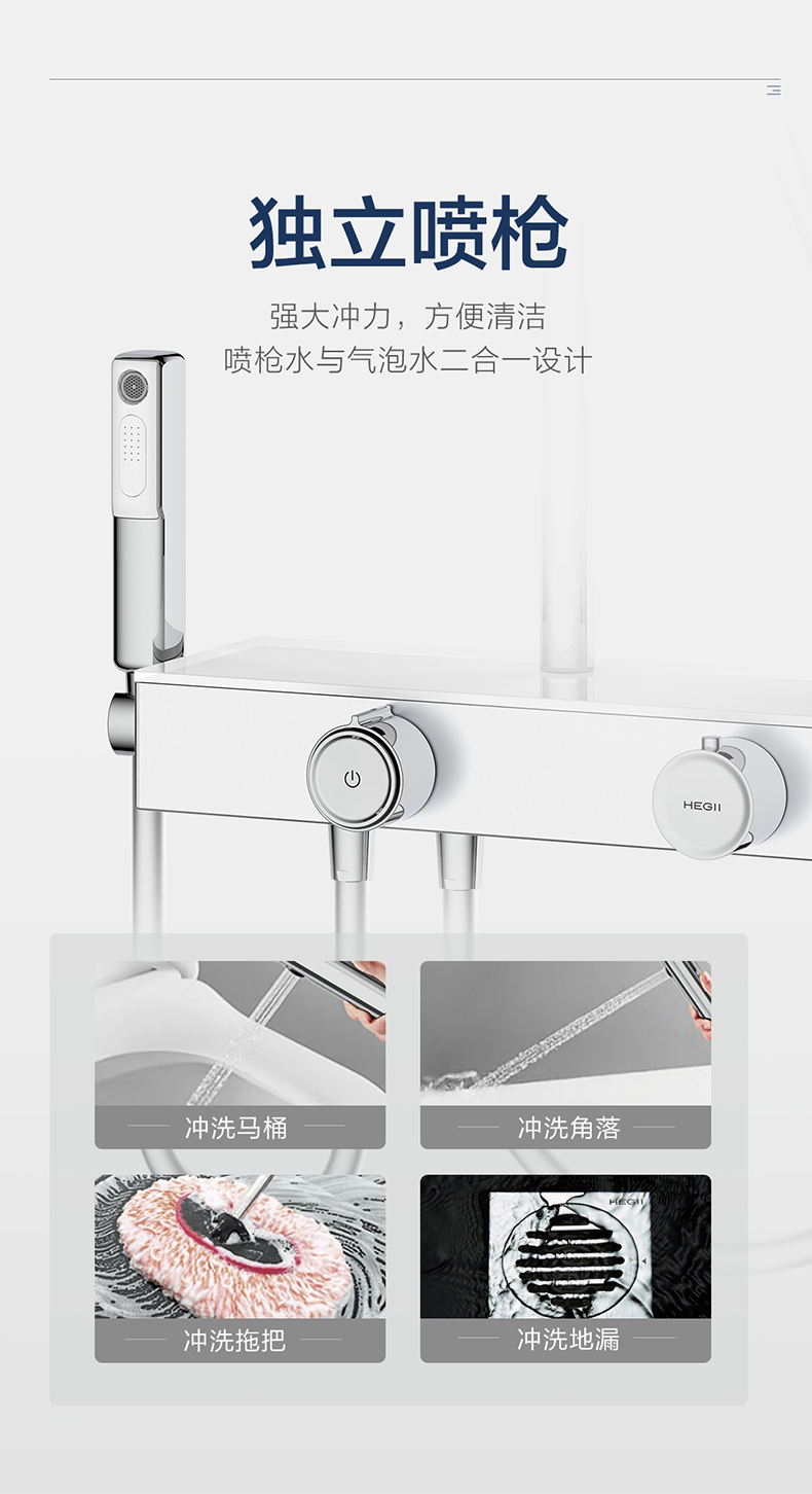 - 獨立噴槍,澎湃水力,輕松清潔