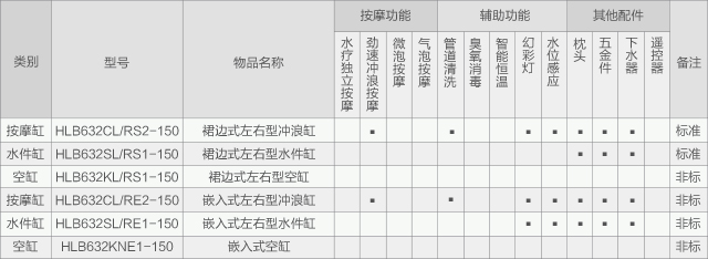 恒潔HLB632系列嵌入式按摩缸