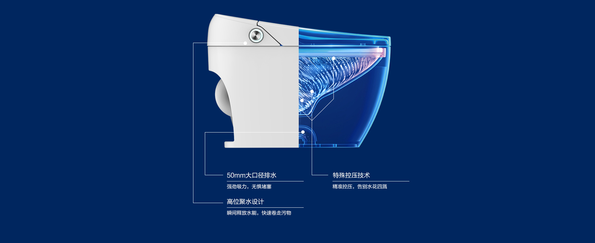 超導沖水系統:沖洗更干凈,內置減壓閥,防濺水貼心設計