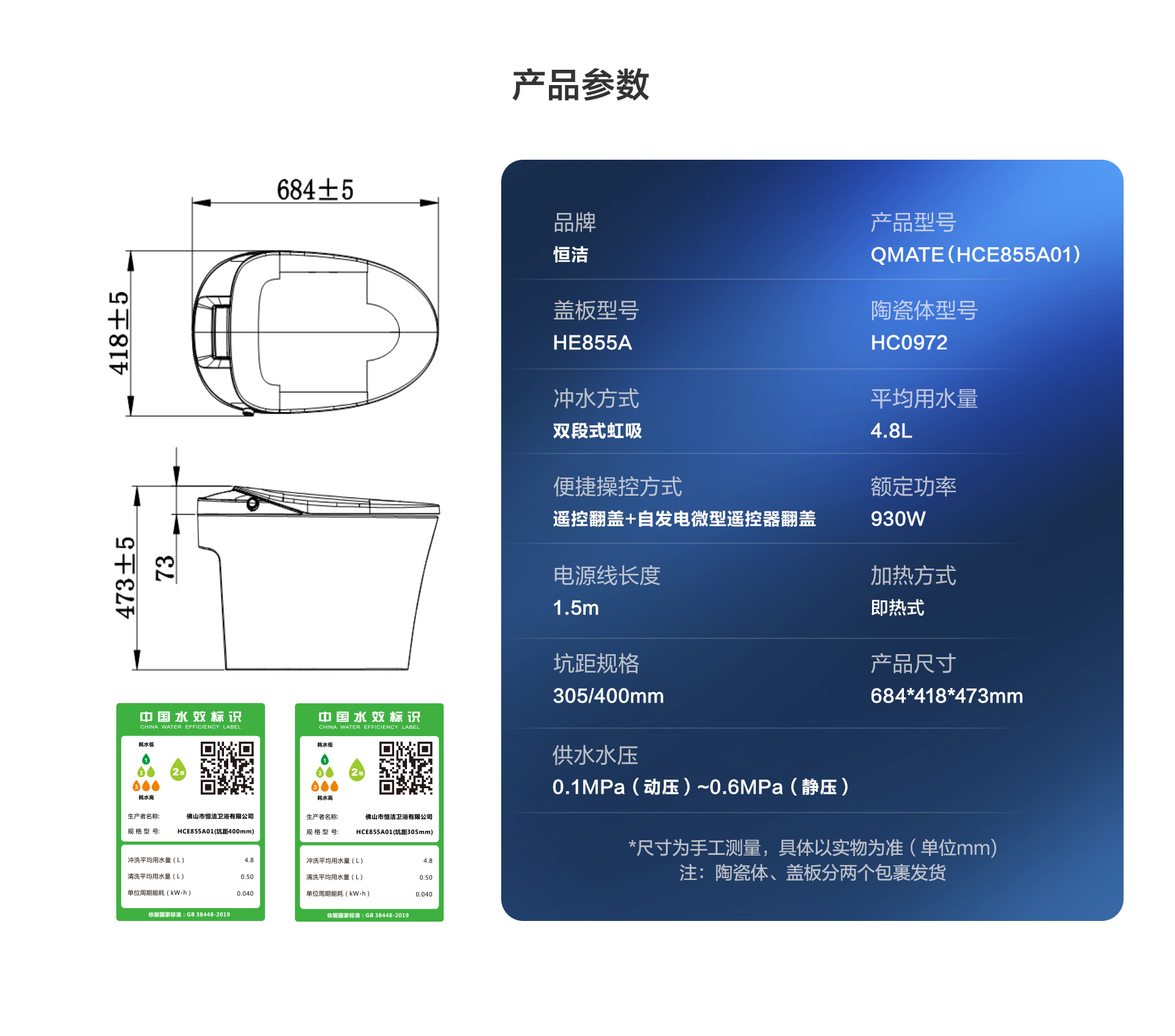 恒潔易沖系統:0.1MPa低壓勁沖,人性化大小沖設計