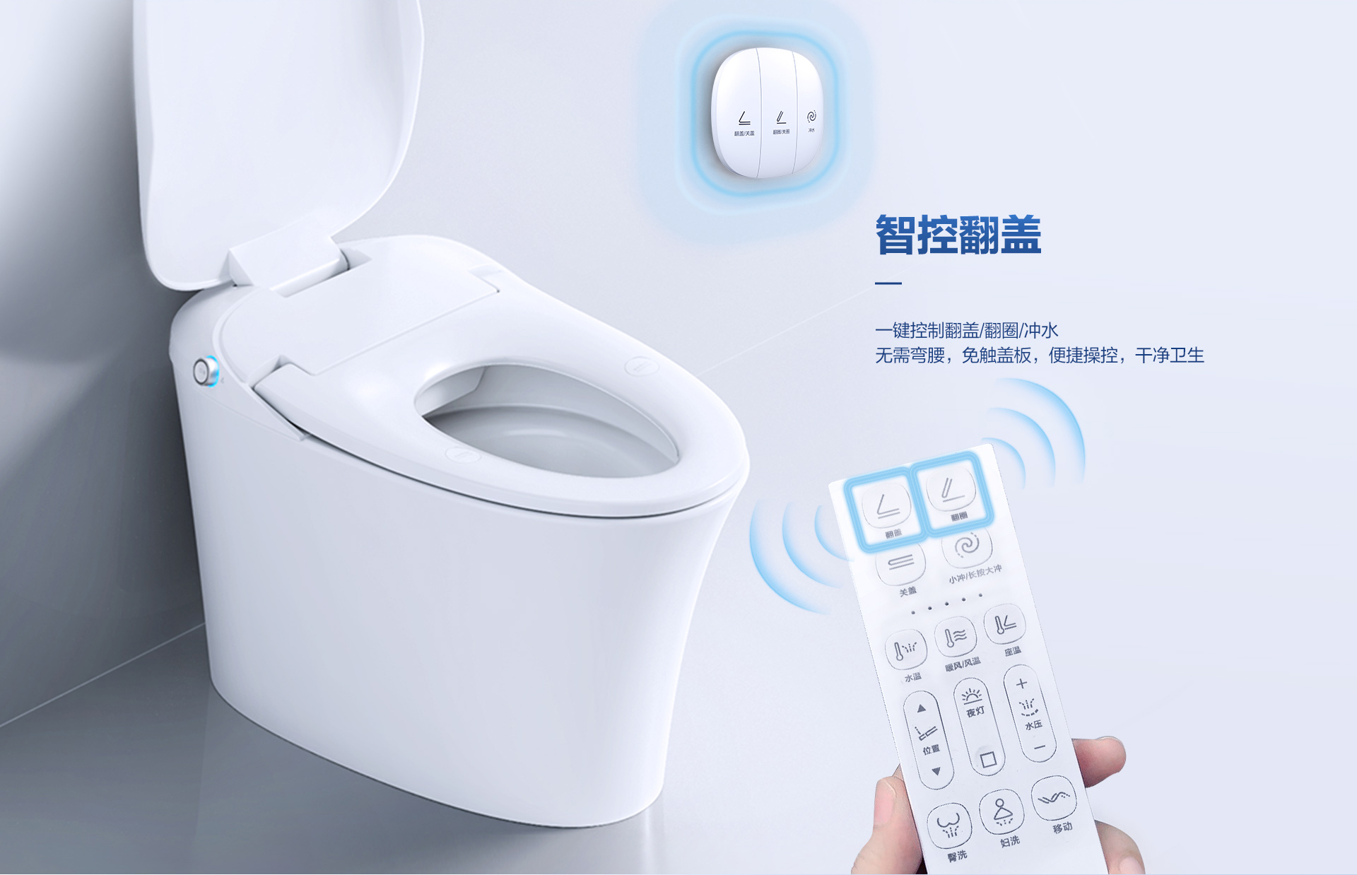 翻蓋翻圈:智能遙控開啟,翻蓋無需彎腰,如廁便捷衛生