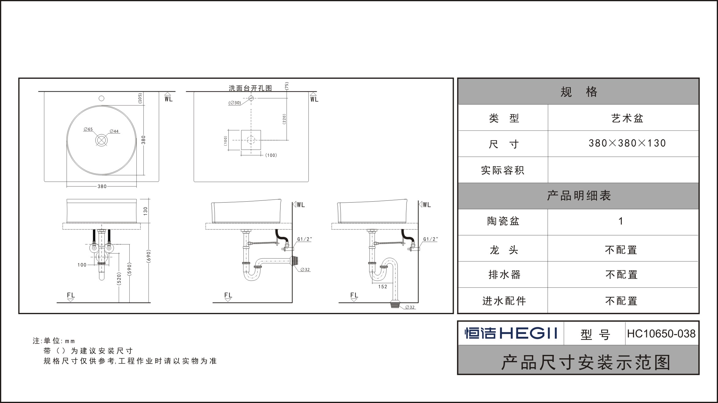 尺寸:380x380x135mm